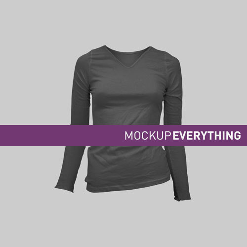 Upload your artwork on this Women's V-Neck Long Sleeve, Ghosted - Front PSD mockup template by your friends at Go Media!